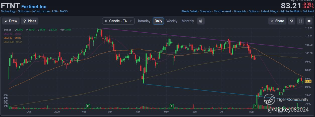 Following a sharp sell-off in recent days, Fortinet (NASDAQ: FTNT) has returned to the spotlight as investors assess whether the cybersecurity giant’s current valuation presents an opportunity or a warning sign. While the long-term growth story remains compelling, recent earnings trends indicate that the company may be entering a slower growth phase—one that demands a more disciplined view on price.