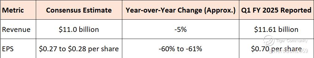 EPS: Expected to be around $0.27−$0.28, a significant decline from $0.70 in Q1 2025.