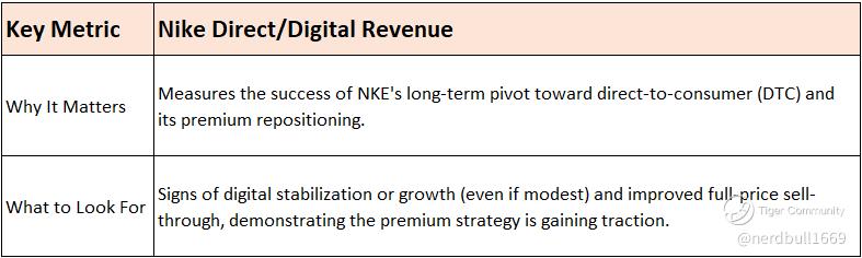 Guidance: Management expects digital traffic and sales to decline by double digits as they reposition NIKE Digital to a full-price, more premium model.