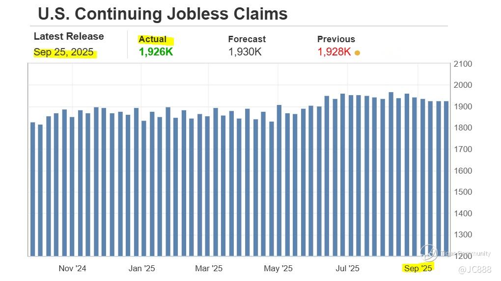 • For week ended 13 Sep 2025, US continuing claims that gauge the size of total unemployed population, came in at 1.93 million.