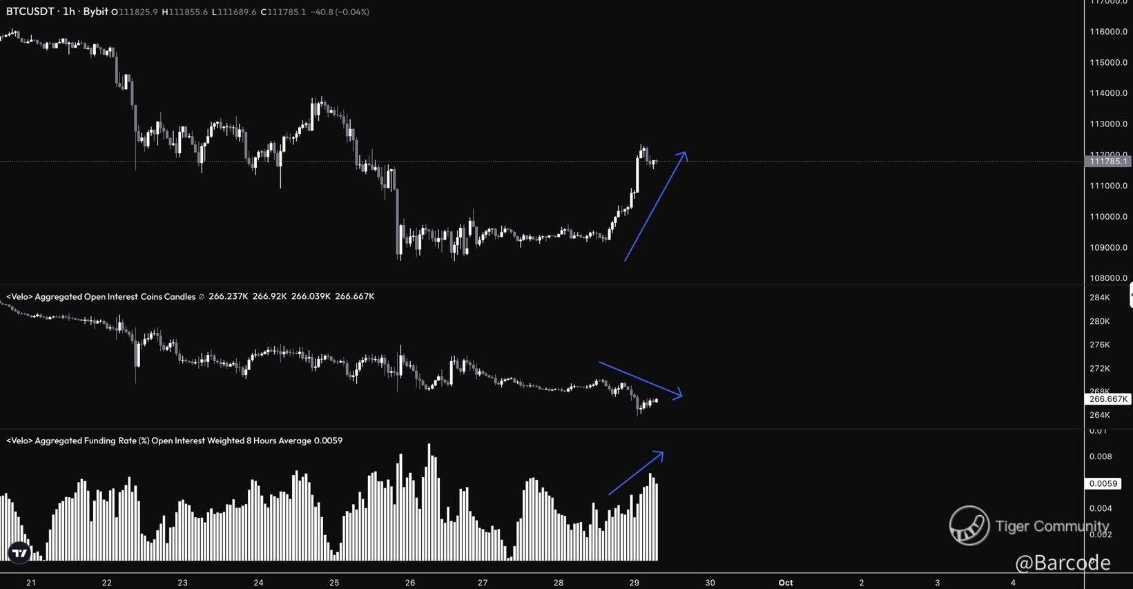 🖼 Chart 1 – BTCUSDT + OI + Funding divergence (1H Bybit)