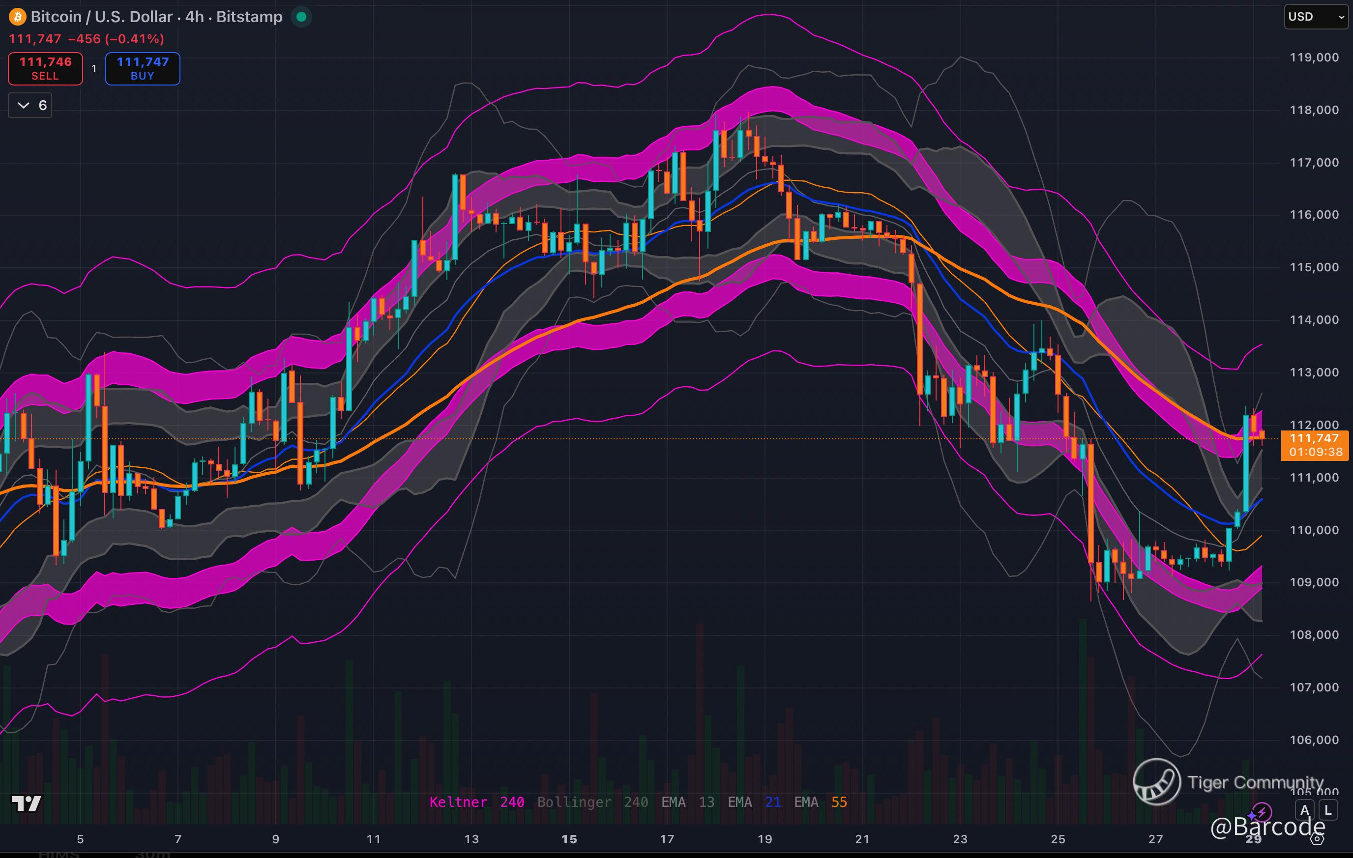 🖼 Chart 2 – 4H BTC breakout from Bollinger-Keltner base