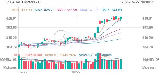 TSLA advanced 4% to 440.40 during Friday's stock market after falling 4.4% on Thursday. Tesla stock was up 32% in September at Friday's market close, finishing the week with a 3.4% gain.