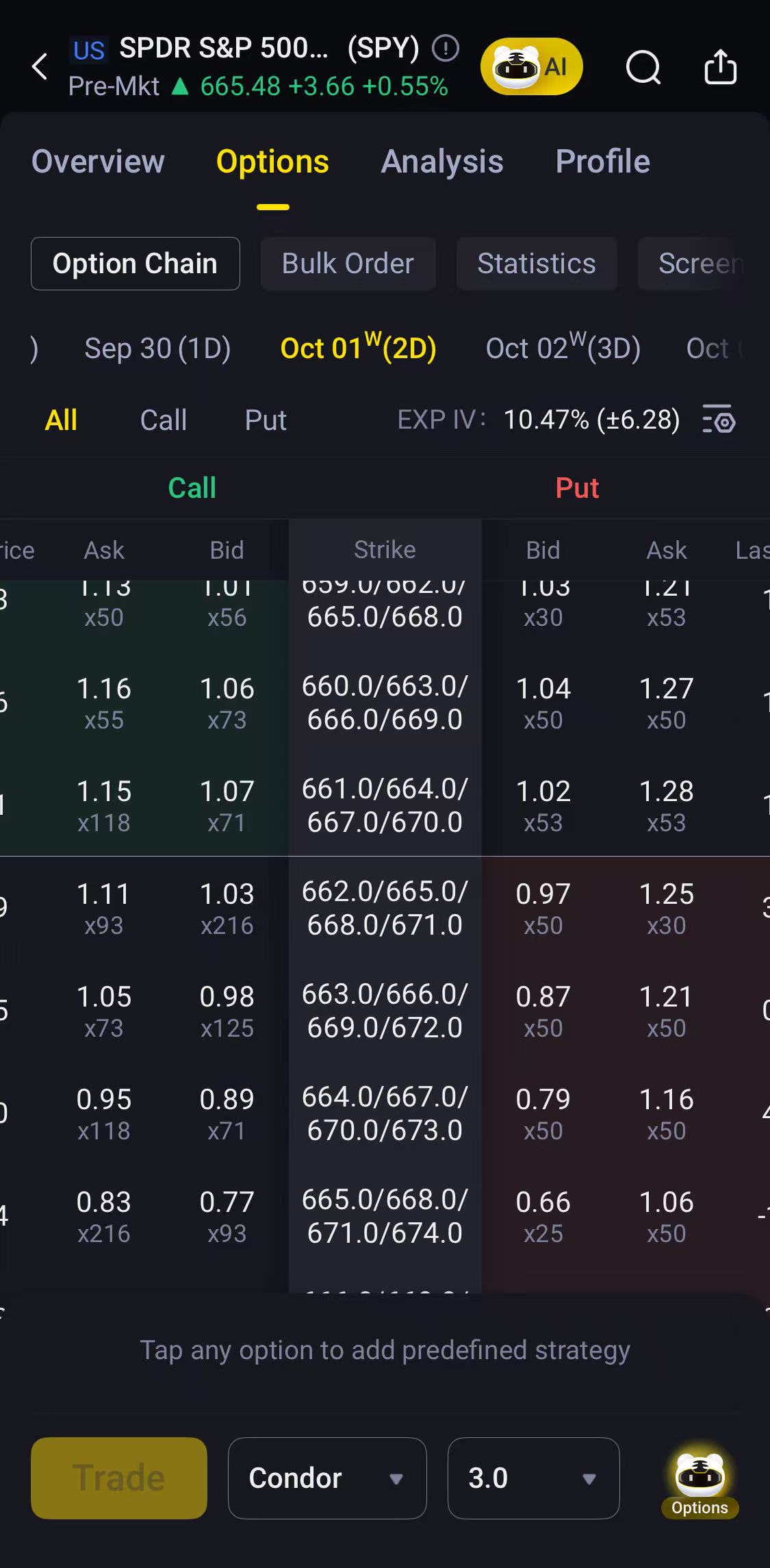 Max loss: If SPY > 667 (big rally) → loss = 3 – premium; If SPY < 655 (big drop) → loss = 3 – premium