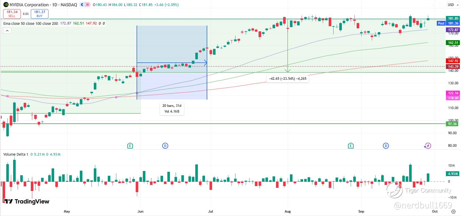 We have seen how $NVIDIA(NVDA)$ hit record at around $184 before dropping back to stay range-bound at around $179 to $181 region, as I hold NVDA for long term, I am contemplating whether I should lock in some gains.