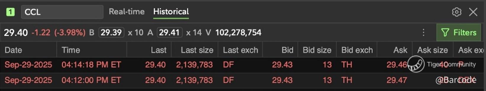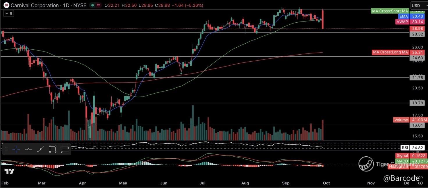 Carnival Corporation ($CCL) lit up the tape in Q3-25 with record revenue and net income, beating on every metric and lifting FY25 guidance for the third straight time. Yet while fundamentals are roaring, heavy block trades and a technical breakdown slammed the stock nearly 4% lower into the close. This sets up a classic clash between fundamentals and flows heading into Q4.