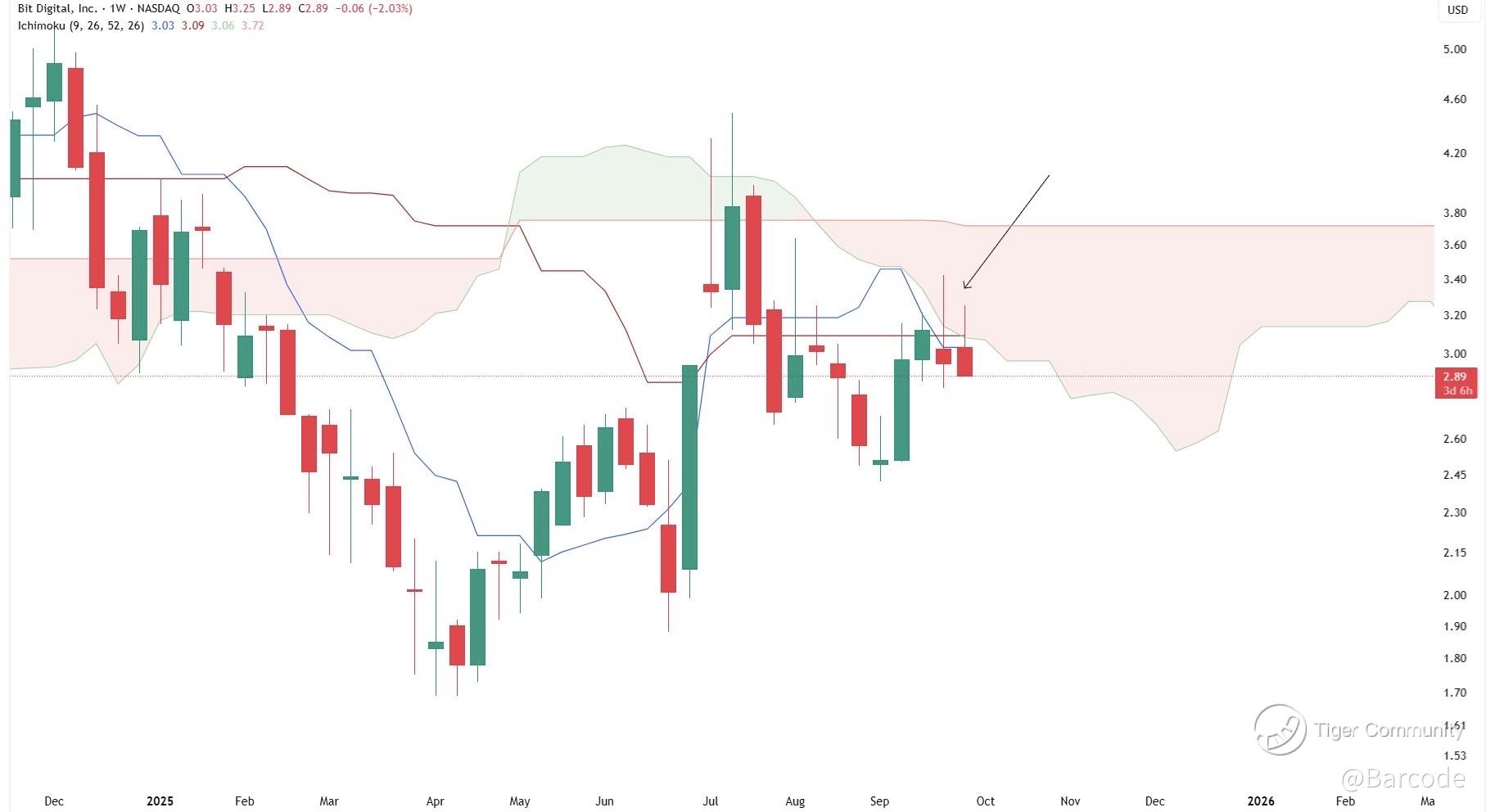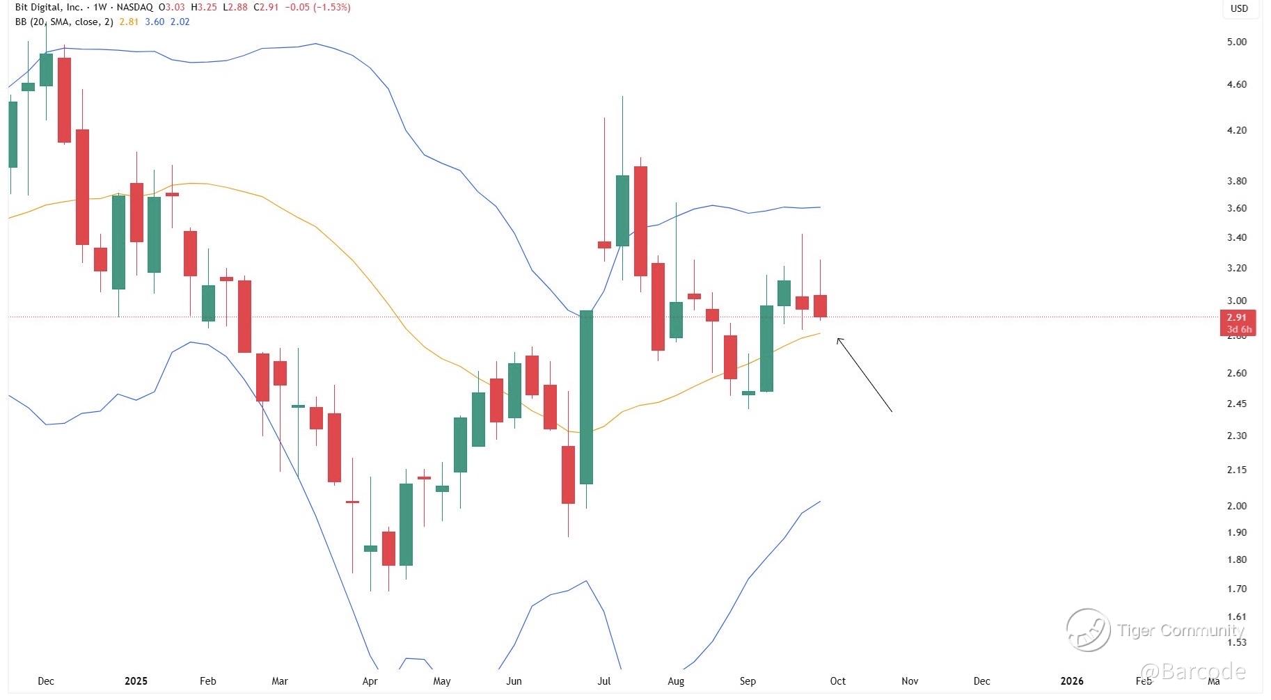 I’m watching Bit Digital closely as flows shift. On the weekly chart: