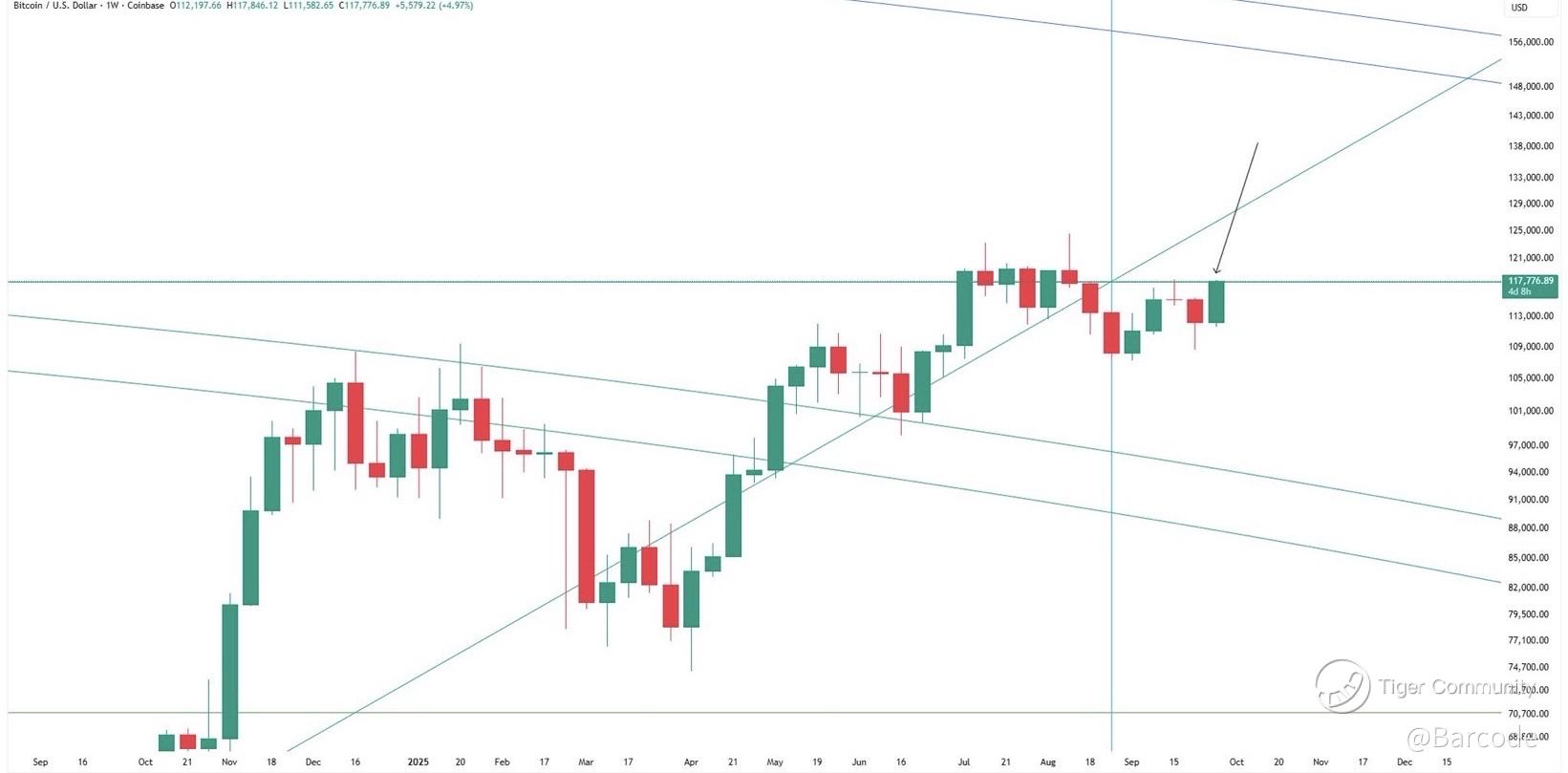 The story isnโt noise; itโs structure. With Coinbaseโs monthly engulfing above $318 and Bitcoin breaking $117,700 intraday, the alignment across timeframes sets the stage for bullish continuation. The weekly close will decide whether this breakout cements into Q4 trend expansion.
