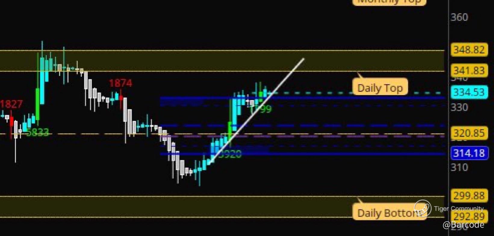 BOOM ๐ฅ $349. Coinbase ($COIN) completed an inverse head-and-shoulders reversal and powered directly into the $342โ$349 zone this morning, alongside strong flows in $MSTR and other crypto-linked names. Headlines blamed the government shutdown; the chart had it mapped first.