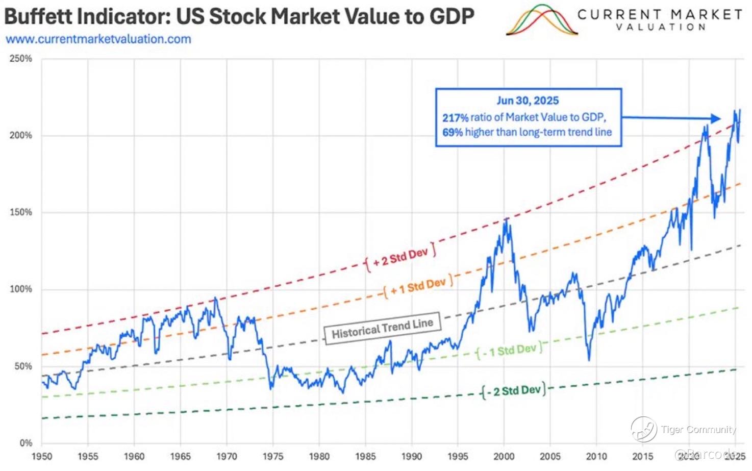 👉❓ If the Buffett Indicator is now at 217%: nearly twice fair value by Buffett’s own yardstick, are we entering a new era of structurally higher multiples, or simply setting up for the sharpest mean reversion in decades?