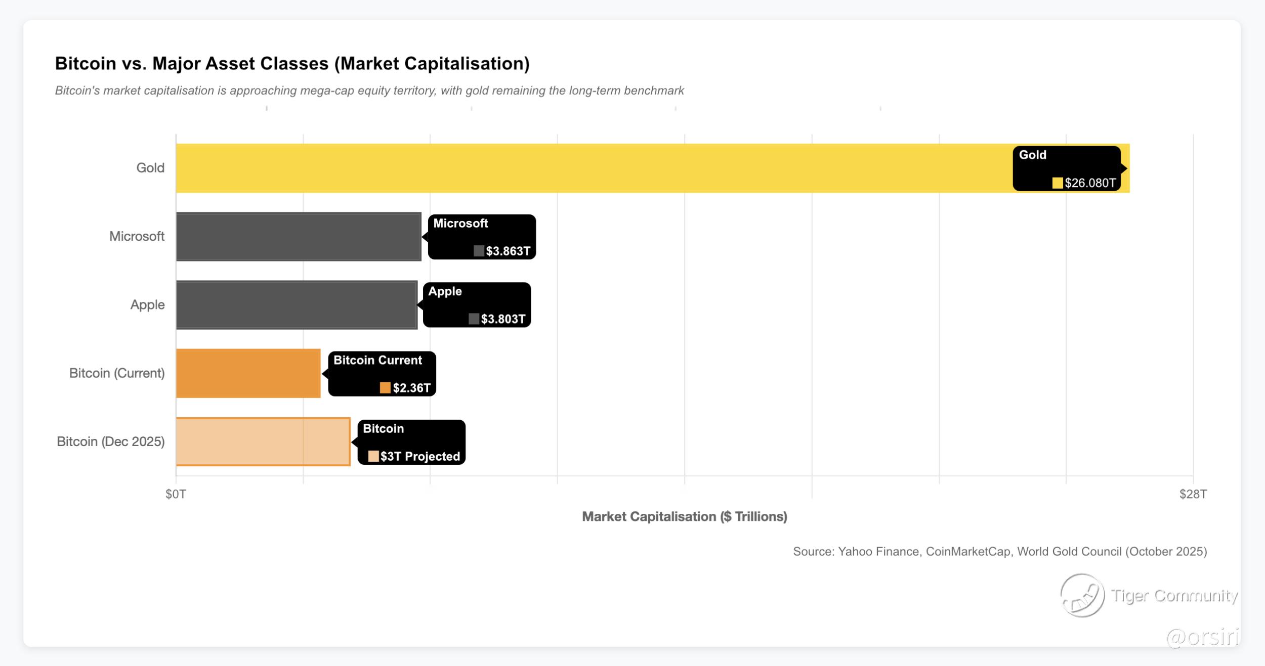 Bitcoin’s December forecast of $127,560 per coin would push its market cap towards $2.5 trillion. More ambitious scenarios put it closer to $3 trillion, which would entrench it as a mainstream asset alongside the biggest names in global markets. The threshold to watch is not price for its own sake, but how much capital institutions allocate once Bitcoin achieves parity with mega-cap equities. That’s where the self-fulfilling cycle accelerates.