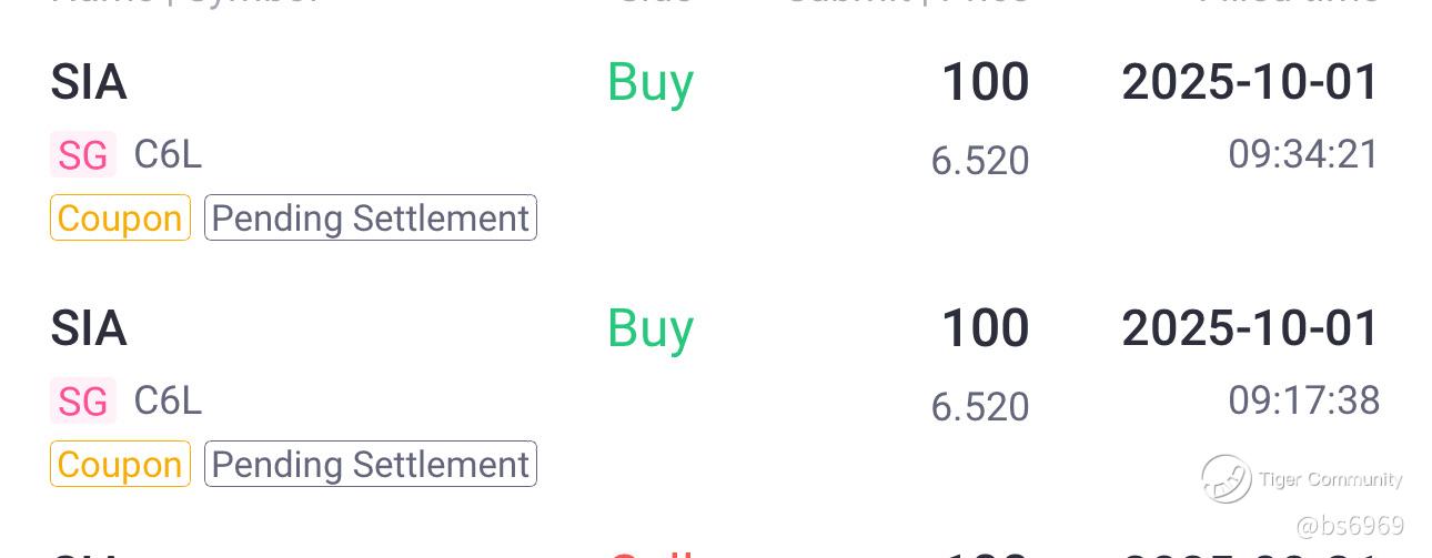 I am buying Singapore Airlines (SIA) at $6.52 because the price aligns with strong technical and fundamental considerations. Historically, SIA has experienced fluctuations due to seasonal travel demand, oil prices, and global economic factors, but $6.50–$6.60 has proven to be a support zone in recent trading. By entering at this price, I am effectively lowering my cost basis while positioning myself to benefit from any near-term rebounds in the airline sector. Technical charts show that SIA is consolidating near this level, and past pullbacks around $6.50 often led to upward swings, making this a favorable point to accumulate shares.