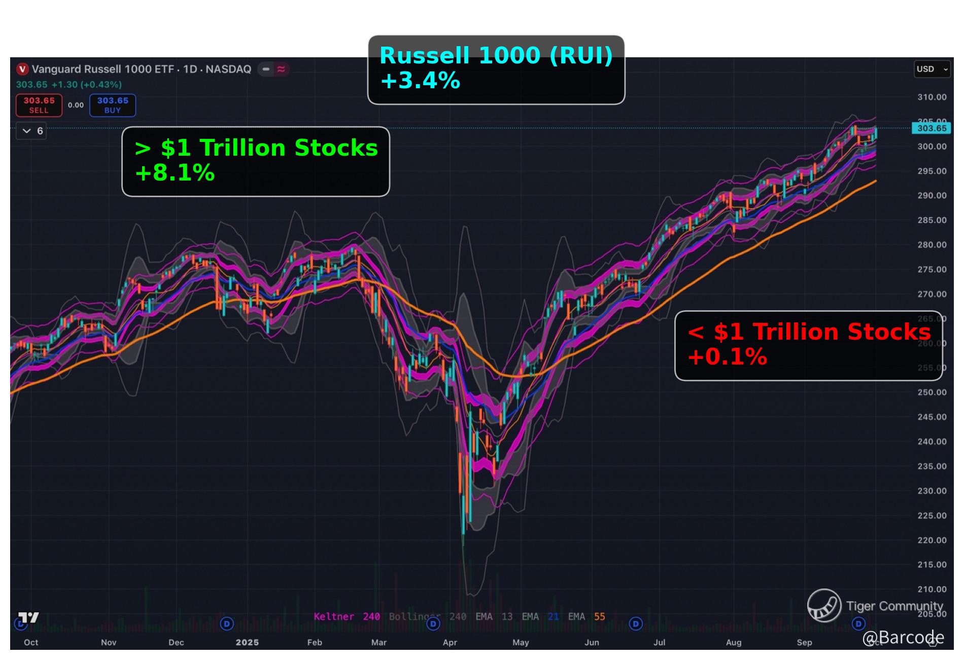 $iShares Russell 1000 ETF(IWB)$ $Vanguard Russell 1000 ETF(VONE)$ $iShares Russell 1000 Growth ETF(IWF)$ 🔥📈💡 Trillion-Dollar Titans vs. Market Breadth 💡📈🔥