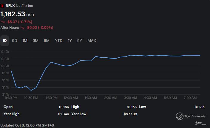 At 12:06 PM +08 on October 3, 2025, NFLX at $1,162.53 per the finance card above trails its 52-week high of $1,341.15, with a 5% five-day drop wiping out $26.5 billion in market cap. The S&P 500 at 6,500 and Nasdaq at 22,000 show caution ahead of unemployment data. A 3.2% rise to $1,200 is possible by October-end, with a 5.4% drop to $1,100 if cancellations deepen. The slide’s real—navigate it!