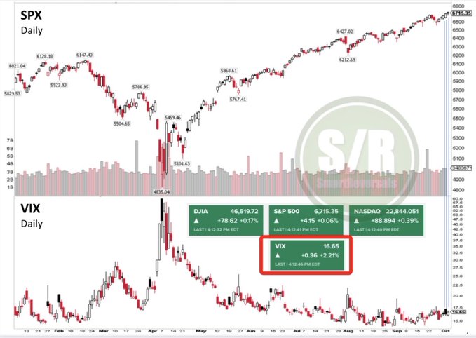 The $Cboe Volatility Index(VIX)$ has closed in the green alongside the $S&P 500(.SPX)$ for 4 consecutive days, which is remarkable since these two usually move in opposite directions.