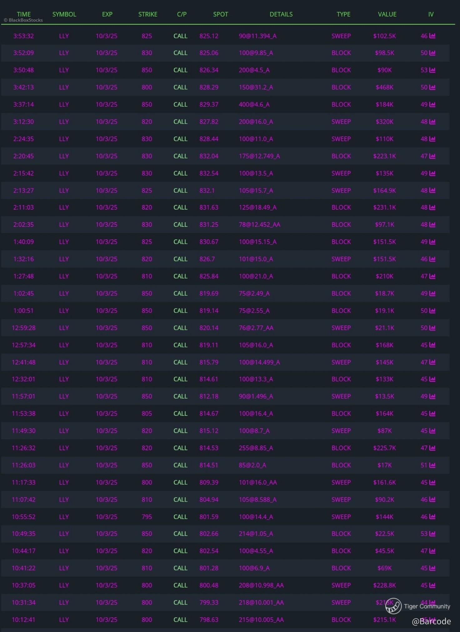 πŸ“ˆI’ve been watching those 800–850 call blocks closely. The size and IV structure suggest real conviction. Pair that with tariff easing and first-line GLP-1 recommendations in Europe and $LLY’s breakout doesn’t look like a short-term pop at all.