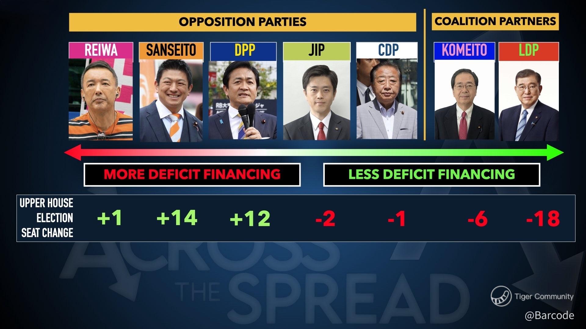• In the Upper House elections, every faction advocating more deficit spending gained seats, while those promoting restraint lost.