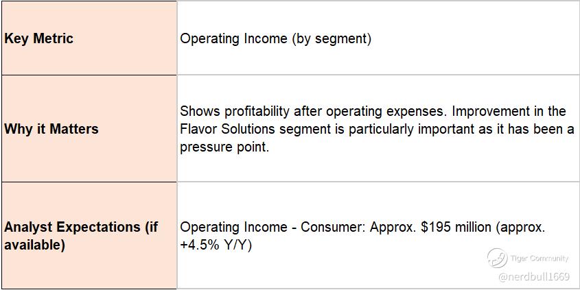 Key Driver: Disappointing organic sales growth, particularly if driven by a sharp decline in volume (as opposed to just lower pricing), signaling weakening demand or market share loss. Significant weakness in the Flavor Solutions segment would also be a negative flag.