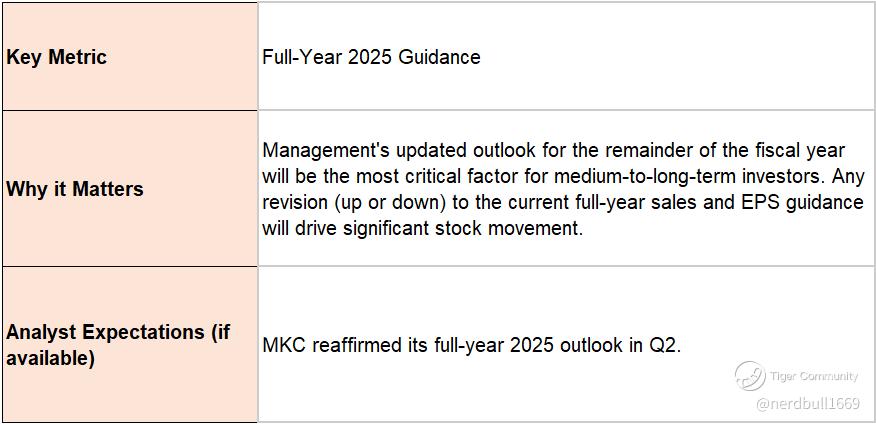 $McCormick(MKC)$ is scheduled to report its fiscal Q3 2025 earnings on Tuesday, October 7th, before market open.