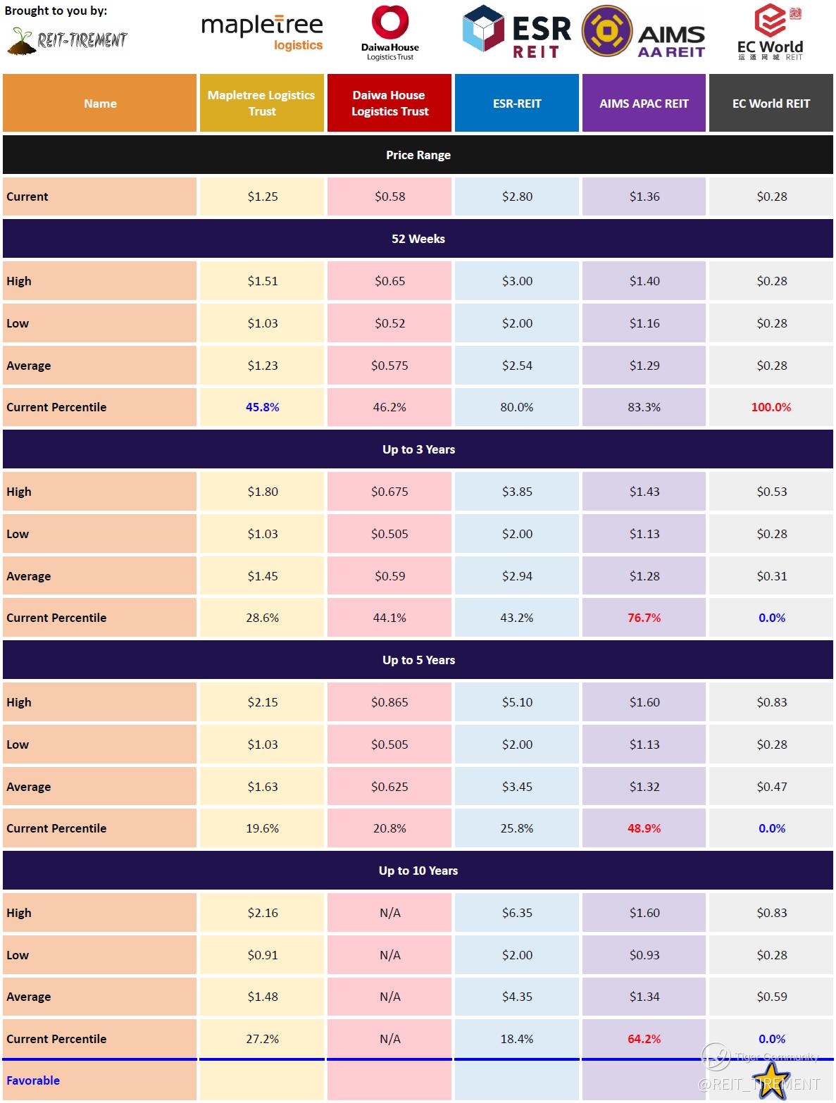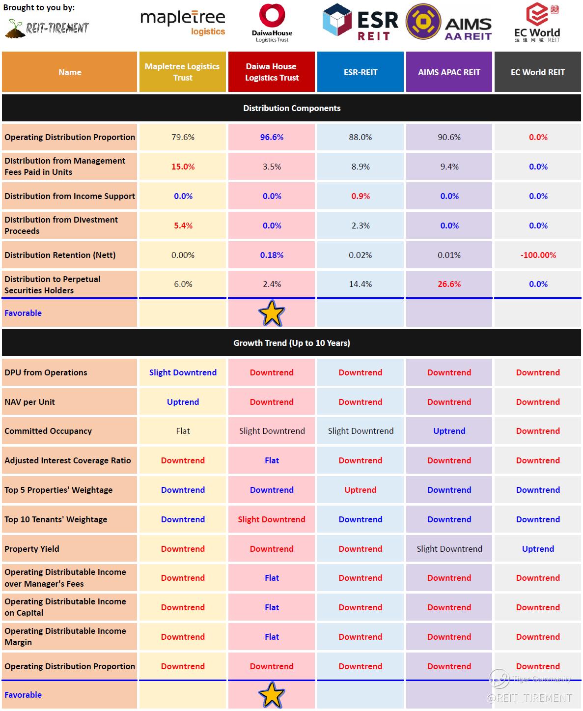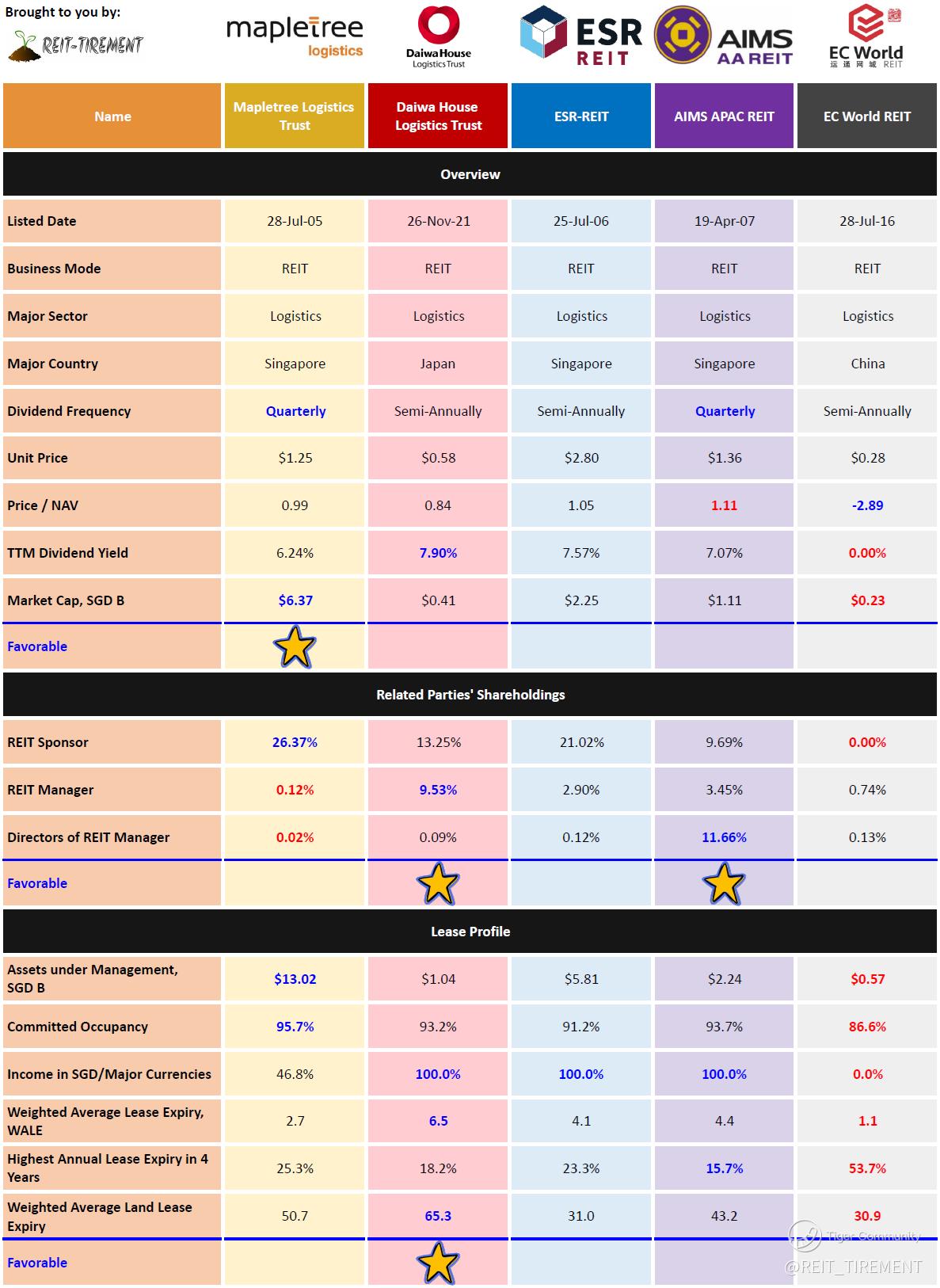 $AIMS APAC Reit(O5RU.SI)$ $ESR REIT(9A4U.SI)$ $Mapletree Log Tr(M44U.SI)$ $EC World Reit(BWCU.SI)$ $Daiwa Hse Log Tr(DHLU.SI)$