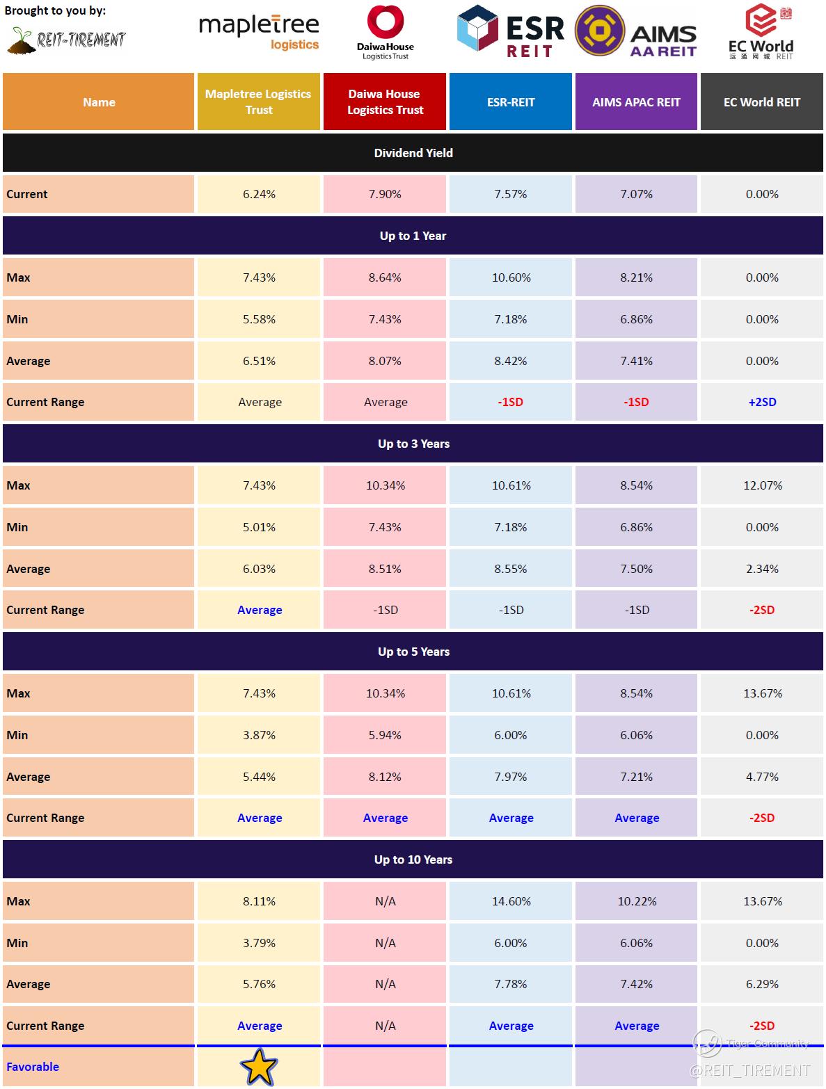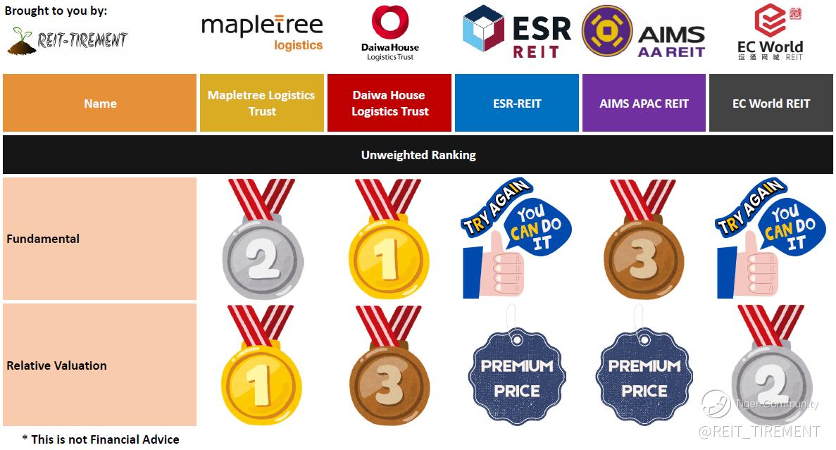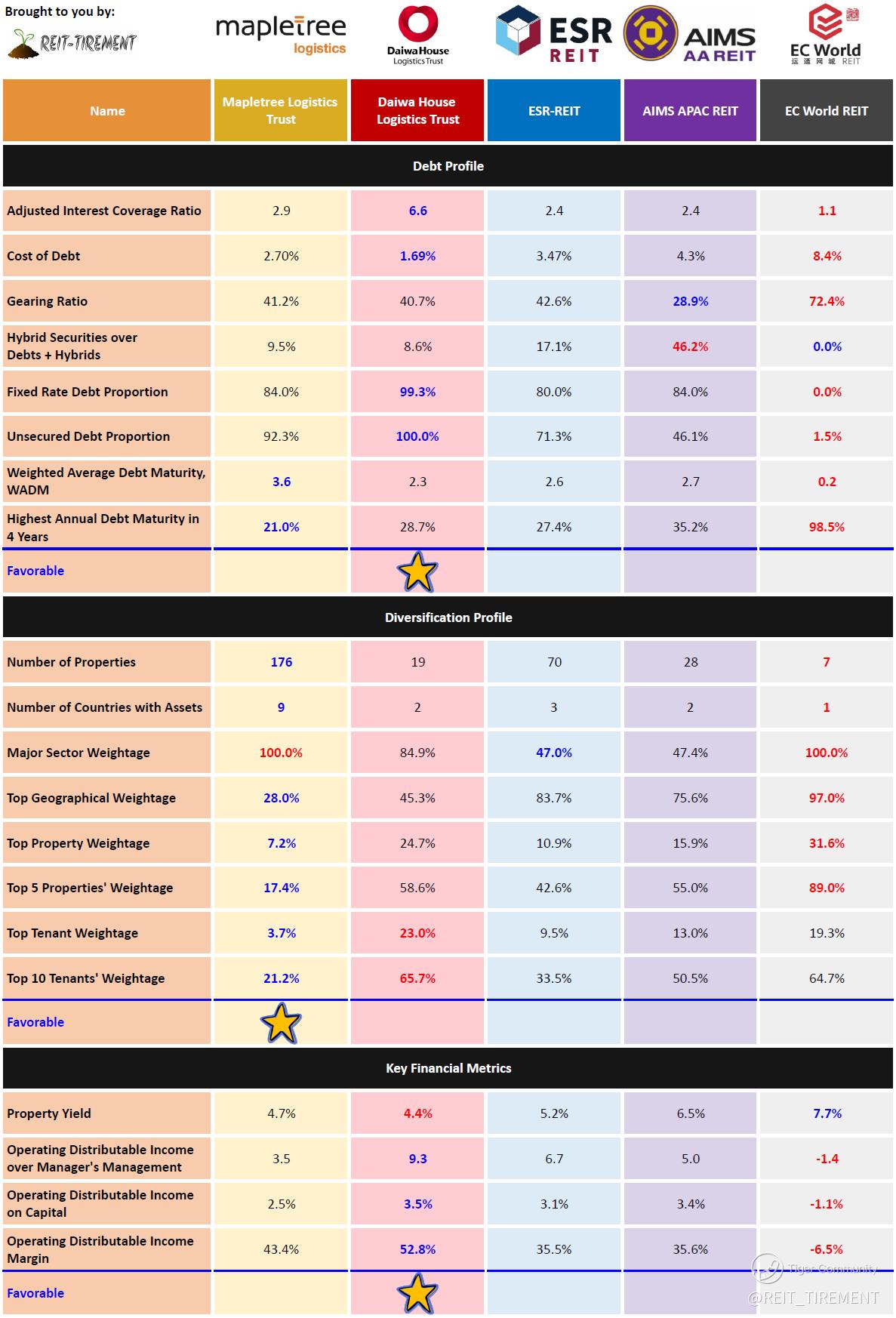 $AIMS APAC Reit(O5RU.SI)$ $ESR REIT(9A4U.SI)$ $Mapletree Log Tr(M44U.SI)$ $EC World Reit(BWCU.SI)$ $Daiwa Hse Log Tr(DHLU.SI)$