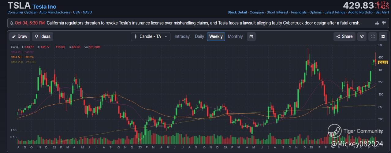 Those looking to build a position may find better value if the stock revisits the $350–$380 range, where Tesla’s long-term potential once again outweighs its short-term challenges. Until then, patience and perspective are key — because even giants need to slow down before the next acceleration.