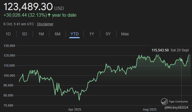 Next Resistance: $124,000 (the August high) and $130,000 (psychological barrier).