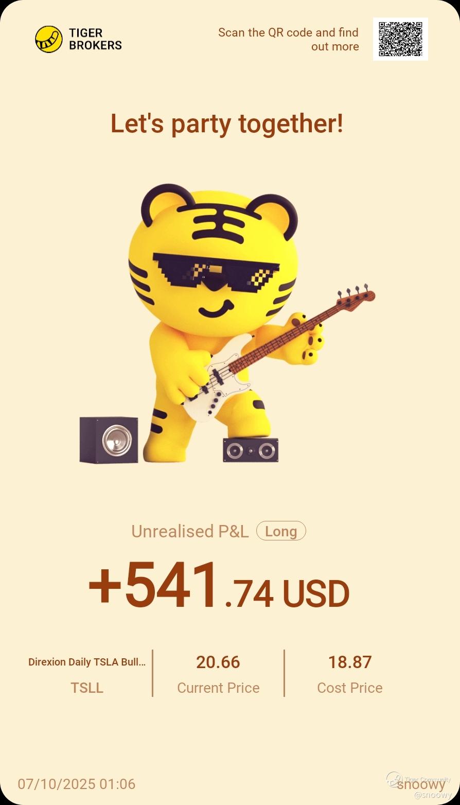$Direxion Daily TSLA Bull 2X Shares(TSLL)$ look up there again! Way to go TSLA! [Wow]