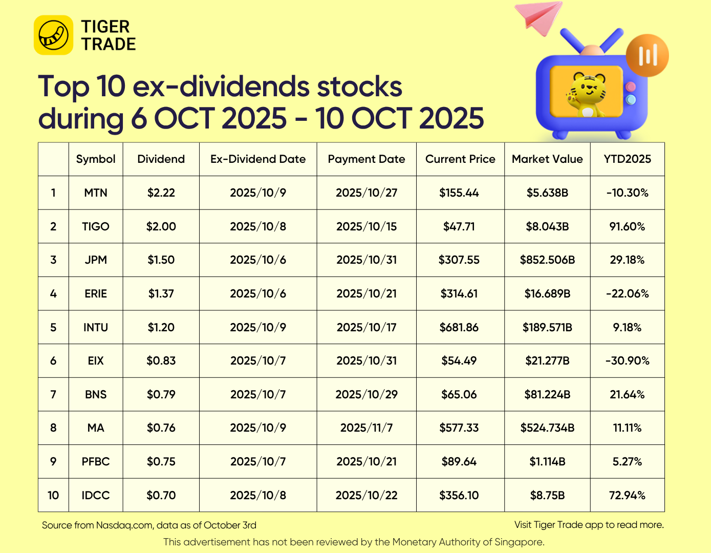 🎁Capturing Top 10 Ex_dividend: MTN, TIGO, JPM, ERIE, INTU...