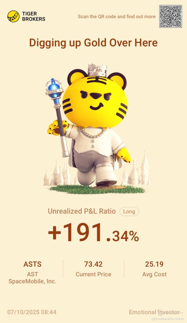 $AST SpaceMobile, Inc.(ASTS)$ not going too bad on this one. Brought it when it was expensive at around $25, now it's crazy based on every backward looking metric. But I don't look at history too much, better to focus on the future