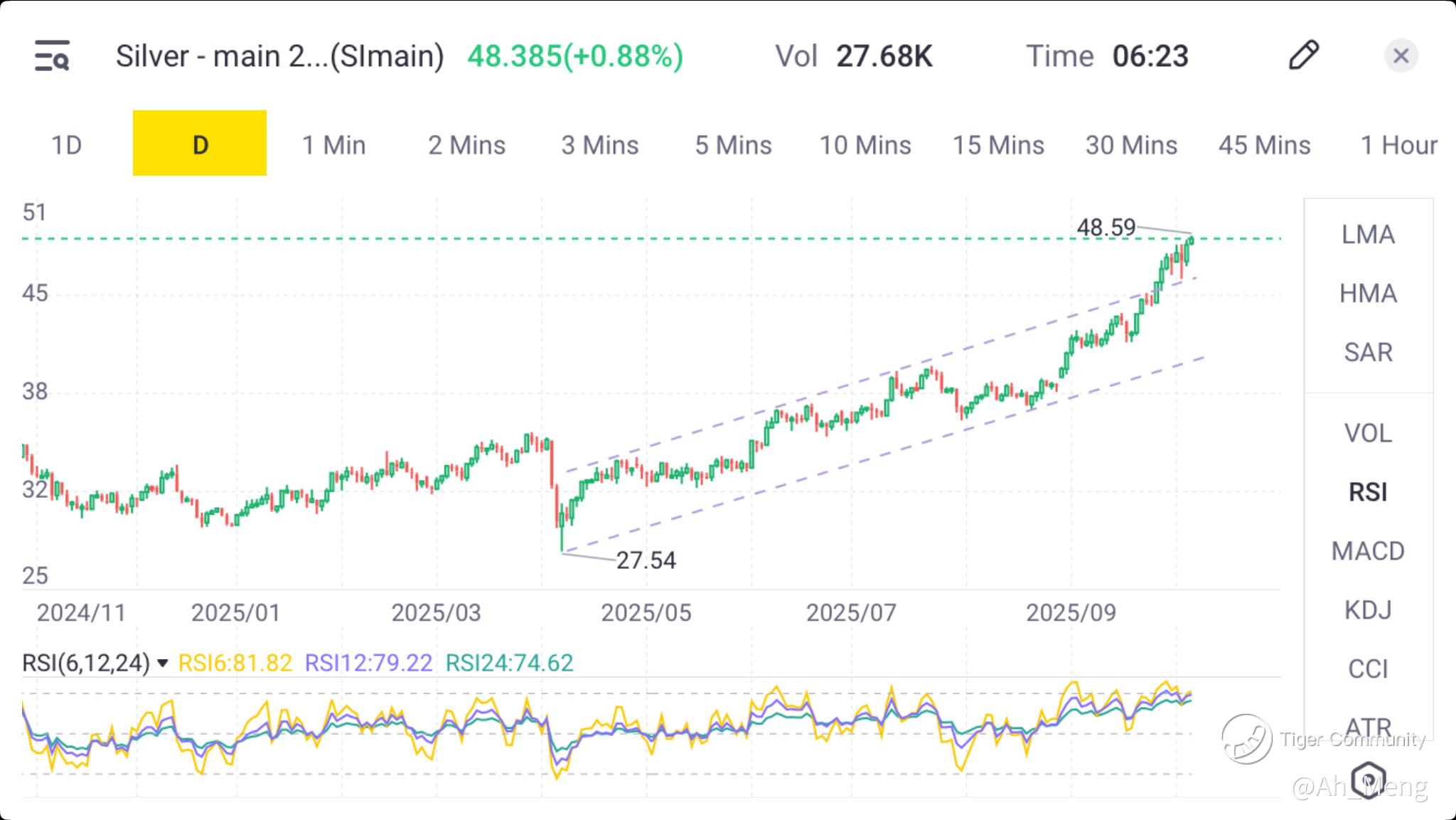 All push comes to shove, central banks and institutional investors are still falling back to gold. Silver, as its trusted sidekick from ancient times, will only outperform. Silver IS shooting past $50! I cannot see any other way around it. The momentum points to that. For every correction it faced, the price just goes back up stronger. Having said that, I am not sure where the price will go from there onwards. The smart bet is still up, given that is the trend, but maybe after some correction. I am hopeful that this will be my next $1000 profit to showcase in 🐯 app. [Tongue] [Grin] [Cool]