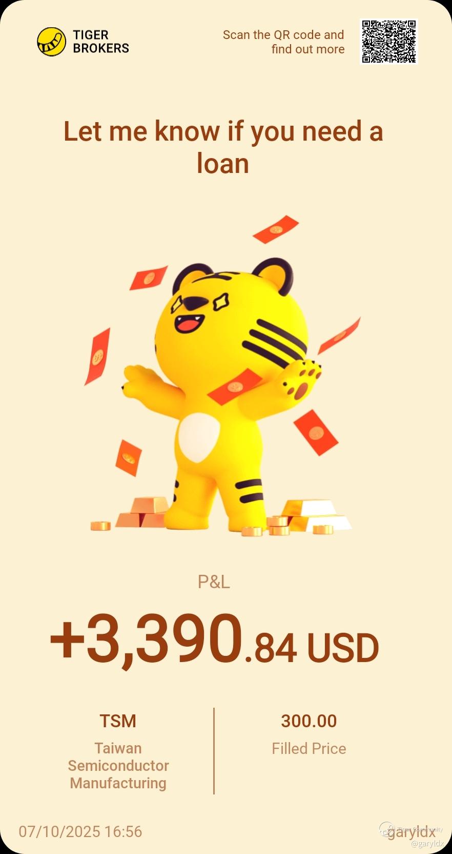 $Taiwan Semiconductor Manufacturing(TSM)$ taking small profit ahead of earnings. Still holding a large chunk of my position in TSM.