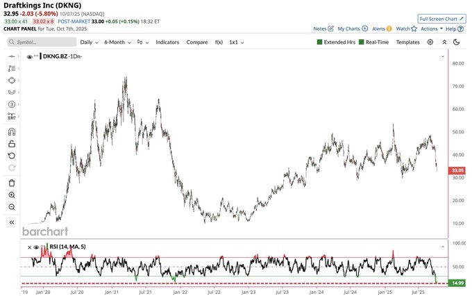 Daily Charts - DKNG hits its most oversold level in history
