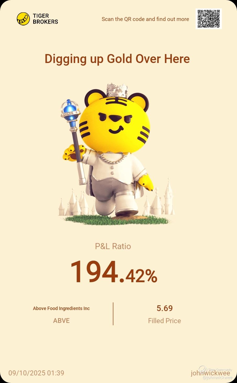 $Above Food Ingredients Inc(ABVE)$ A trade 3 months in the making and required lots of pay-tience. Finally paid off.