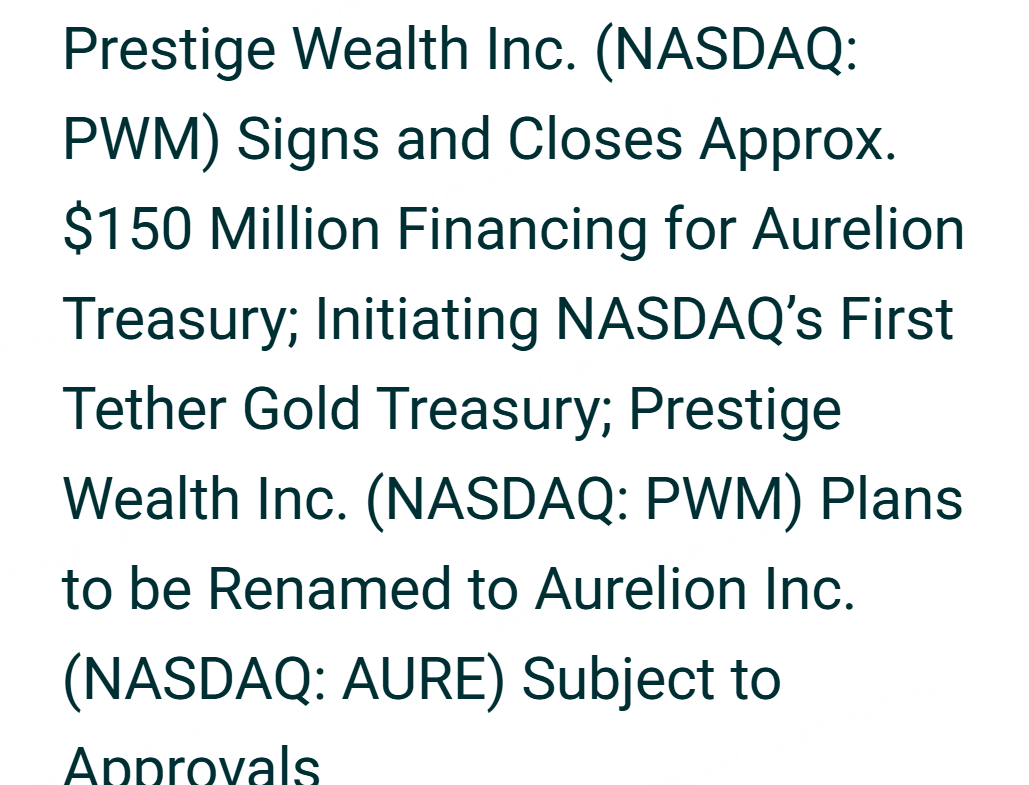 According to the company, $Prestige Wealth Inc.(PWM)$ has secured investment from stablecoin giant Tether, making it the first publicly listed digital gold stablecoin treasury. Major investors in this financing round also include $Antalpha Platform Holding Company(ANTA)$ , a close strategic partner of Bitmain, and Kiara Capital Holding Limited.