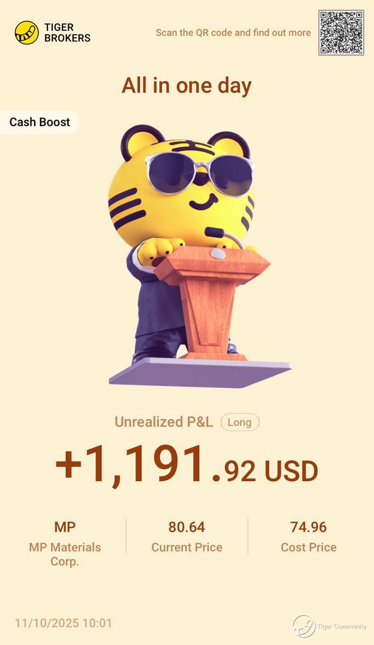 $MP Materials Corp.(MP)$ finally broke through that key resistance! Its story goes beyond mining—it's expanding into magnet manufacturing to build a China-independent supply chain. This strategic move is a major long-term driver. Holding above $80 would be super bullish!