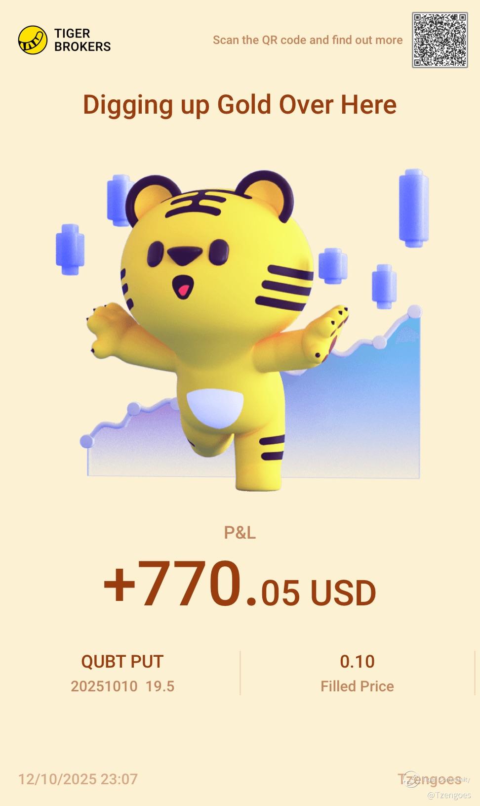 $QUBT 20251010 19.5 PUT$ Sell Puts on Wednesday 8-Oct. Bought Puts on Friday On 10-Oct before QUBT ended the day lower than 19.5. Always remember to close positions to lock in profits and not let them expire.