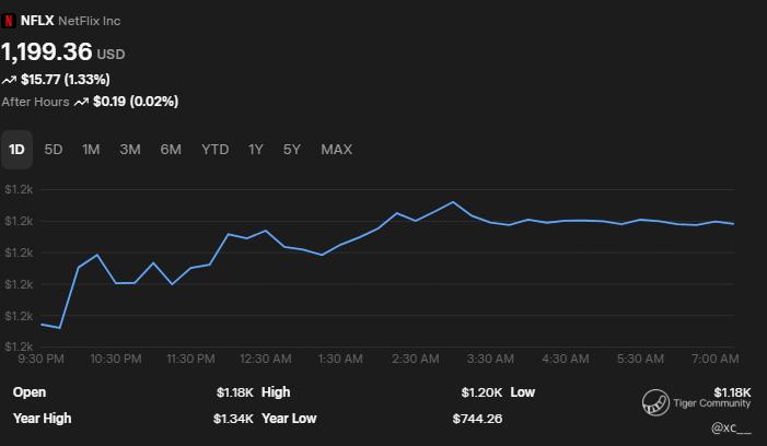 $Netflix(NFLX)$ Netflix at $1,199.36, up 61% YTD from $744.26 per the finance card above, nears its year-high $1,341.15. The S&P 500 at 6,700 and Nasdaq at 22,200 reflect strength, but a 10-15% drop to $1,079-$1,019 looms if monetization falters. An 8.4% rise to $1,300 is possible by October-end, with $1,500 (25%) by year-end if guidance shines. The king’s move is nigh—act now!