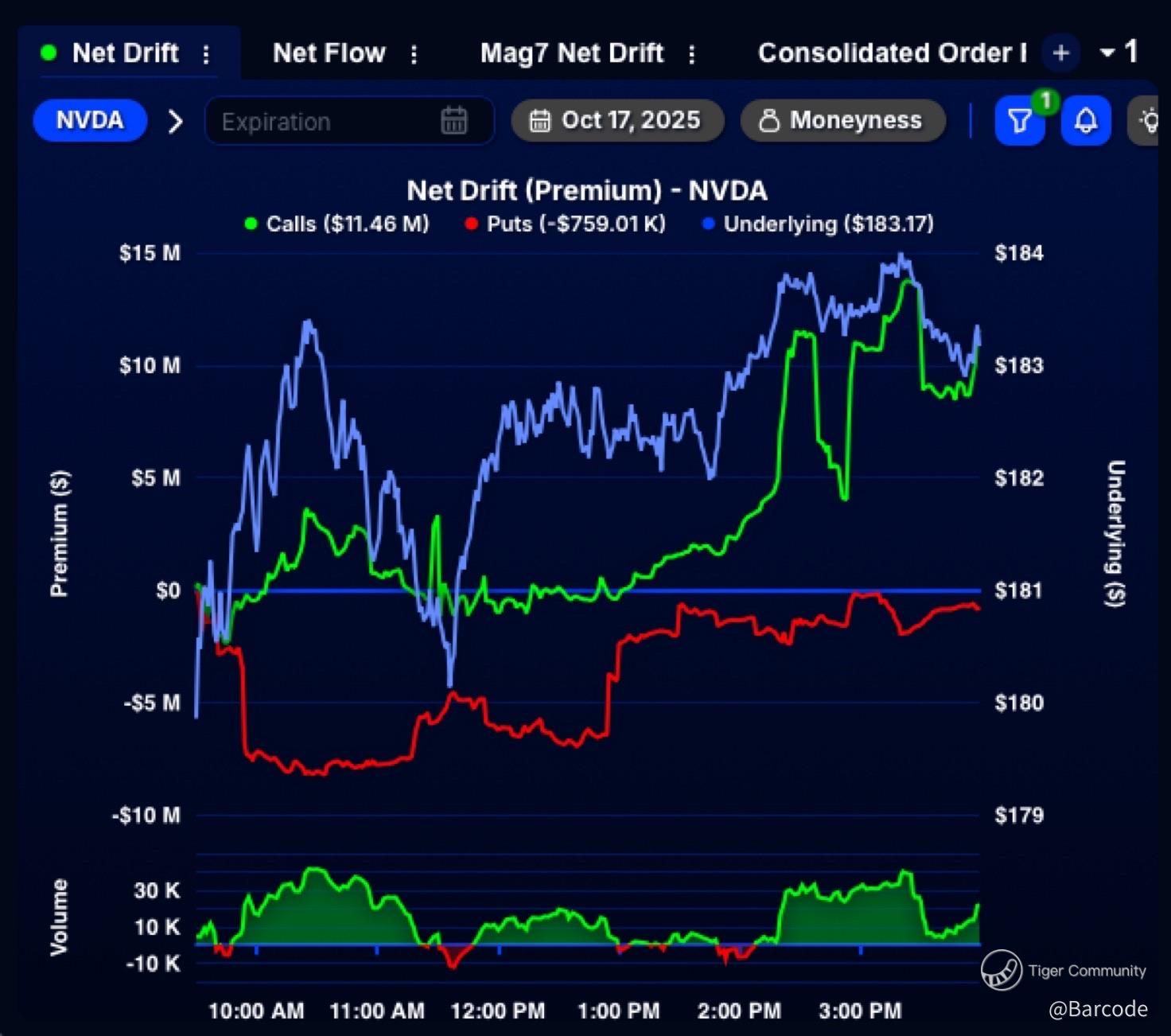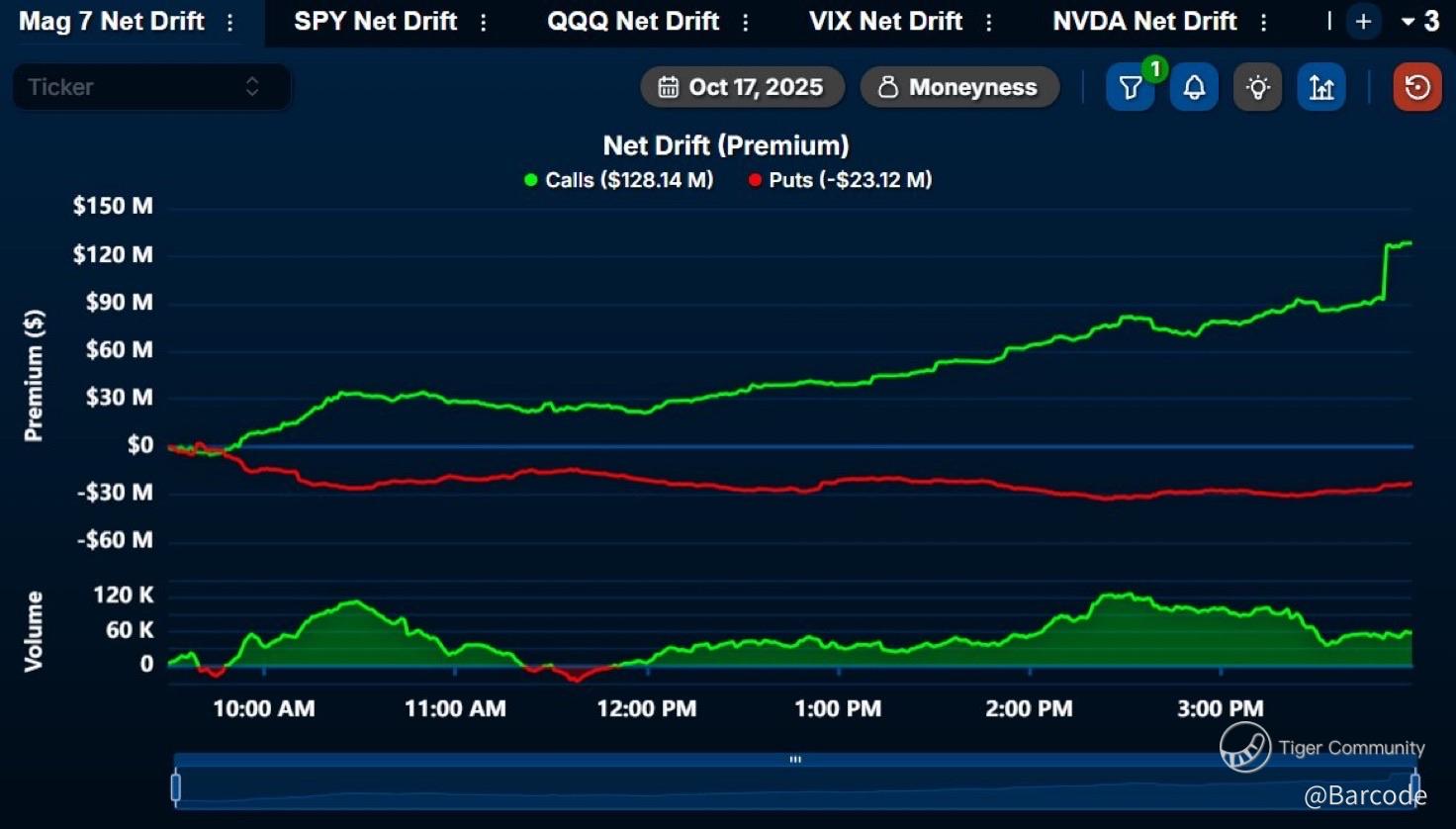 Options flow confirms the fracture. On 17 October, $100 million in Mag 7 call premium crossed the tape, but beneath that optimism, a $2.52 million bearish put sweep hit $NVDA at the $170 strike (6.7% OTM) for 14 November expiry. Institutions arenβt doubling down; theyβre hedging the hero.
