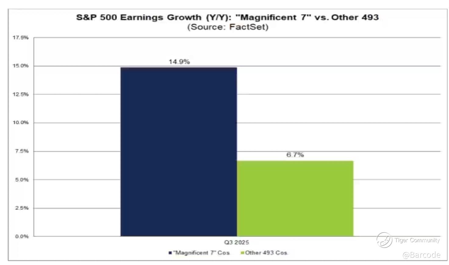 Only one of the seven, $NVDA, is expected to rank among the top five S&P 500 earnings drivers this quarter, alongside $BA, $LLY, $INTC and $MU. FactSetβs Q3 data shows the seven growing earnings 14.9% YoY versus 6.7% for the other 493.