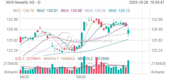 Novartis (NVS) ended Monday down –0.94 % to $129.14, with extended-hours trading showing a sharper –3.10 % drop to $124.96 after cautious pre-earnings positioning.
