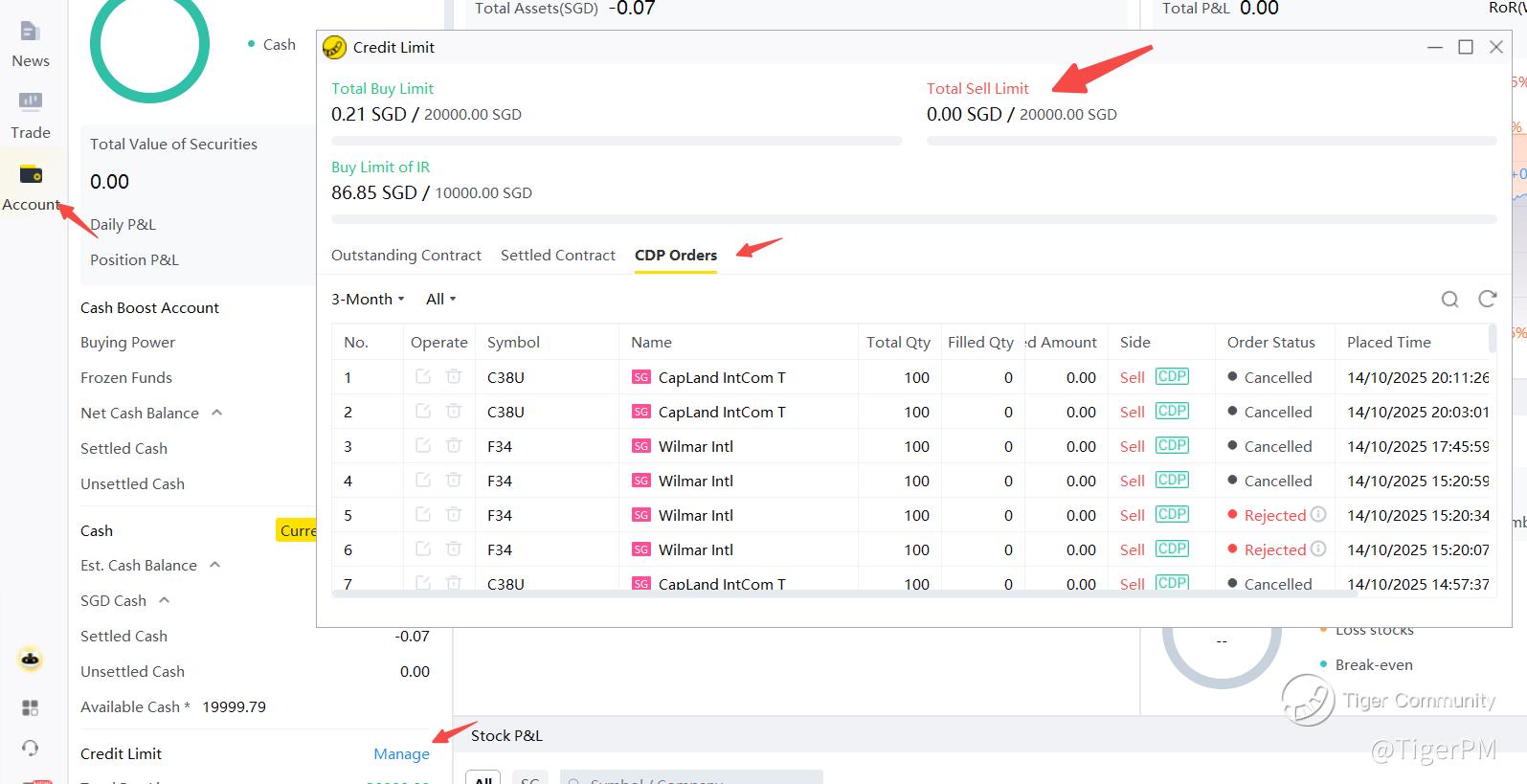 You can also view the total selling amount and CDP orders in Account-Credit Limit-Manage