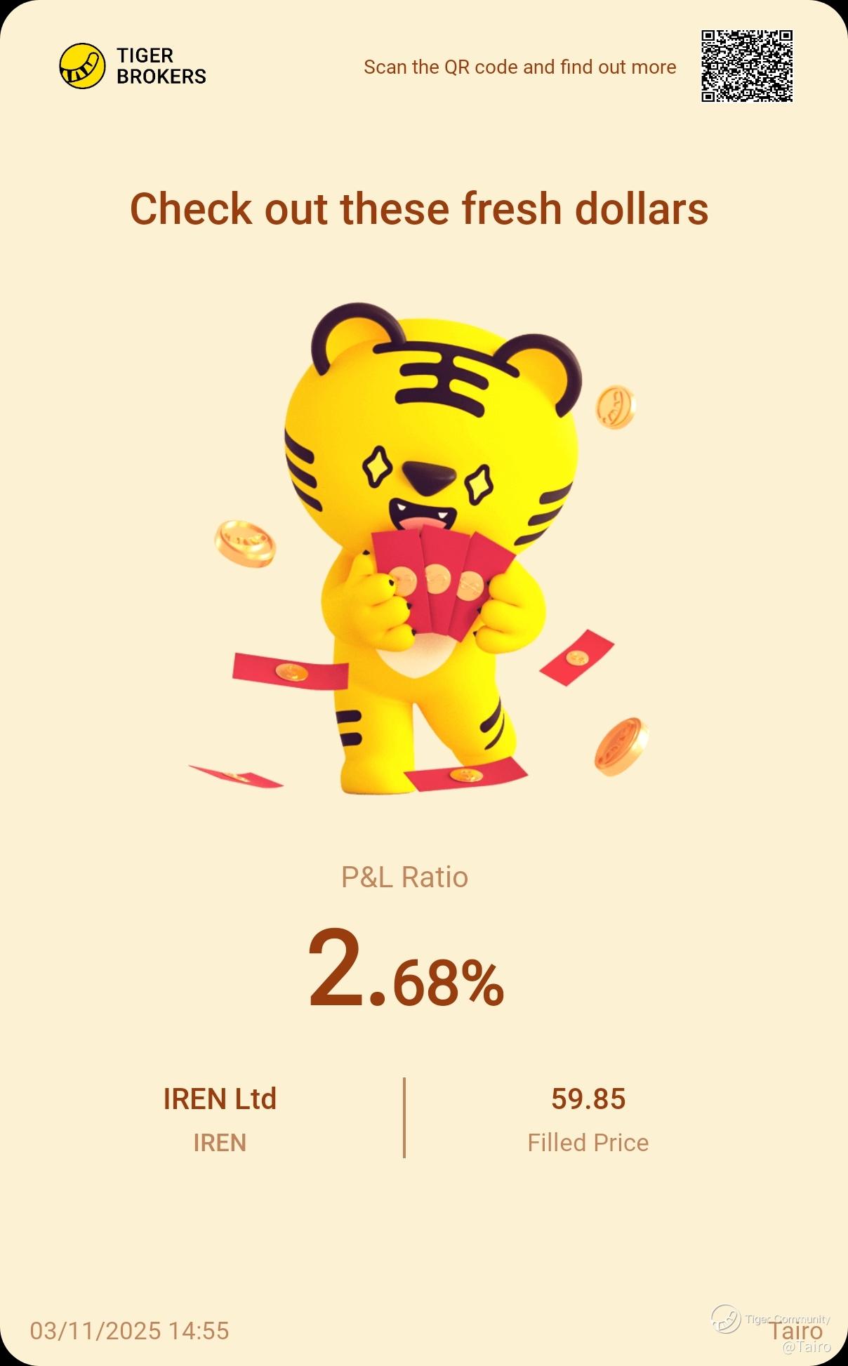 $IREN Ltd(IREN)$ Closed IREN for kopi money — waiting to buy back cheaper.