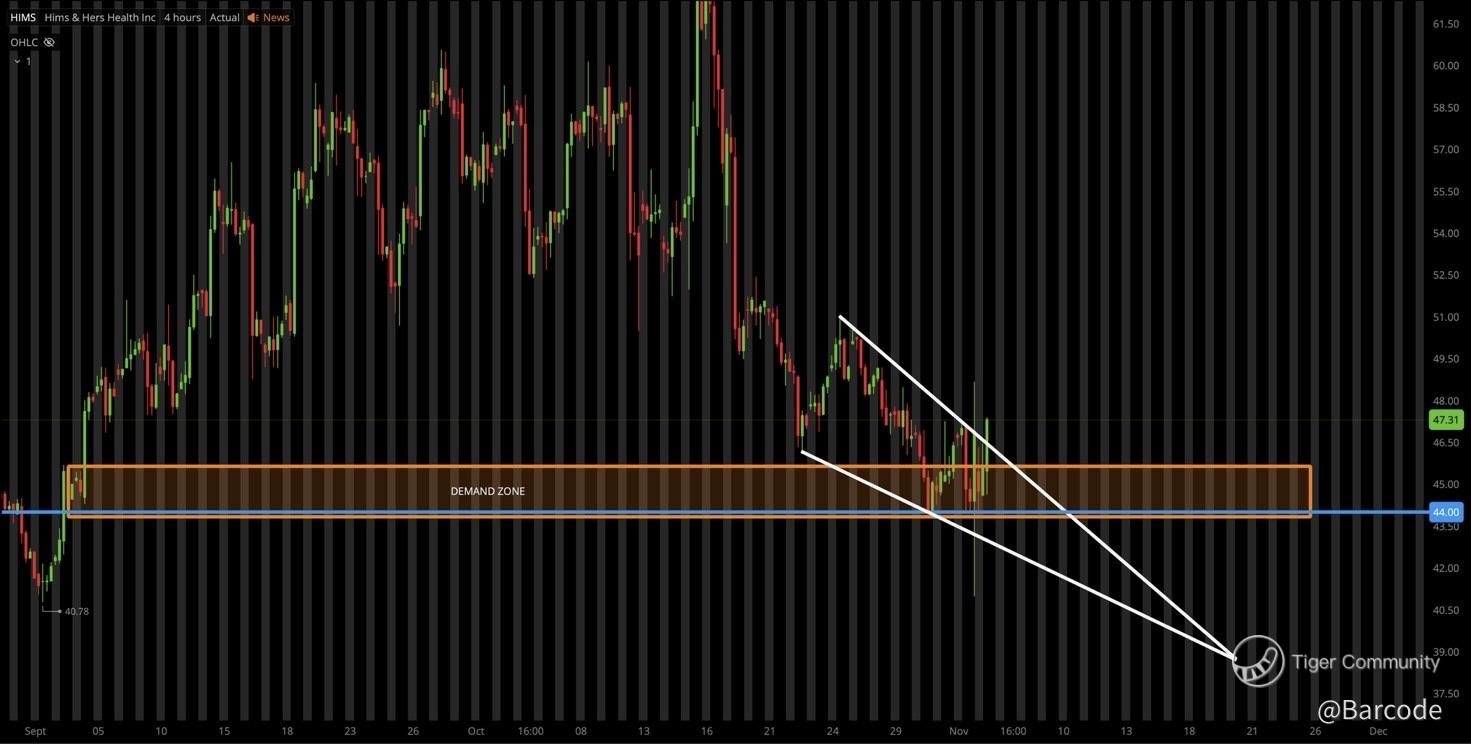 I’m bullish and accumulating. This $44–$46 zone offers a defined-risk, high-conviction setup. Stop $38 (below trend support), base target $60, stretch target $80+. Catalysts include Q4 earnings (Feb 2026) for updates on GLP-1 partnerships and Hers brand milestones. With 49 % growth, 21 % subs and mounting cash flow, execution outpaces valuation.