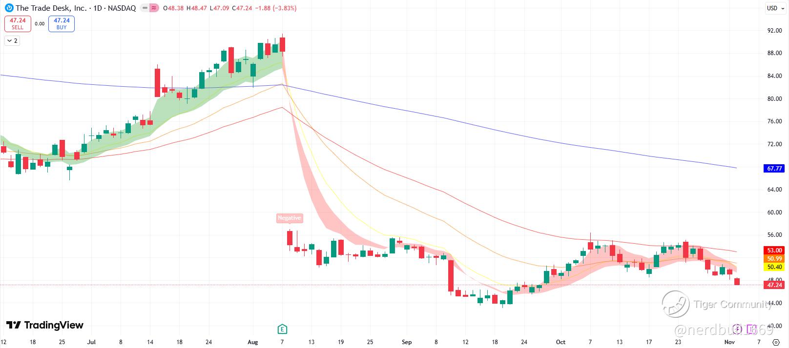 TTD currently is in a downside movement, and attempt to make an upside did not go well, and we could be going for a downwards move if the guidance for Q4 come out lacklustre. Investors are not feeling confident for the share price move, and we could be seeing another downside.