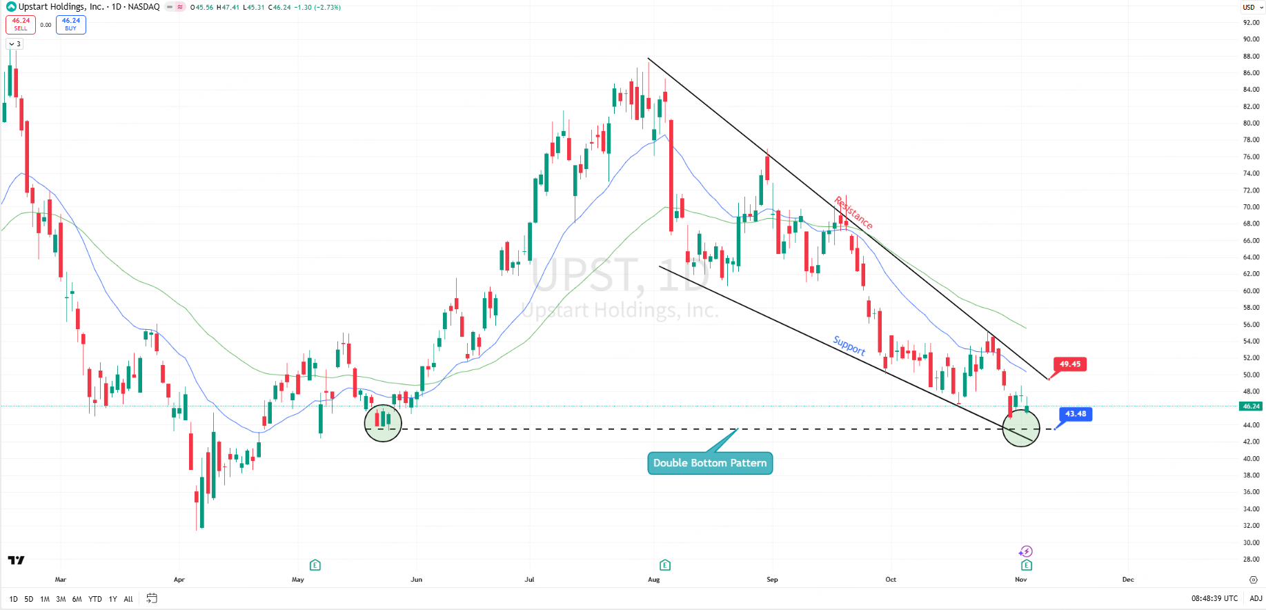UPST Slips Toward $45 Support as Downtrend Persists Ahead of Earnings