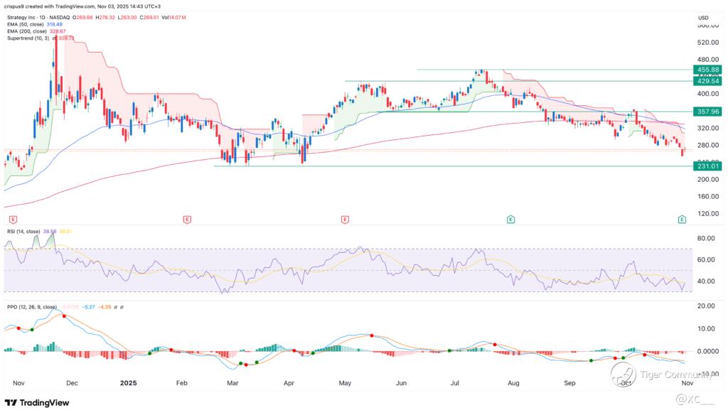 Now, let's talk COIN and MSTR—these crypto titans are feeling the burn too. Coinbase dropped after mixed Q3 vibes, with revenue hitting $1.87B (beating estimates) but trading volumes tanking 40% in spots. MicroStrategy? They crushed earnings with $8.42 EPS (way over the -$0.11 forecast) and $3.9B operating income, but the stock's still slumping hard amid the BTC rout. Will the slump drag on? If Bitcoin keeps sliding, yeah—expect more pain. But savvy investors know: this could be the shakeout before the next leg up.🤔
