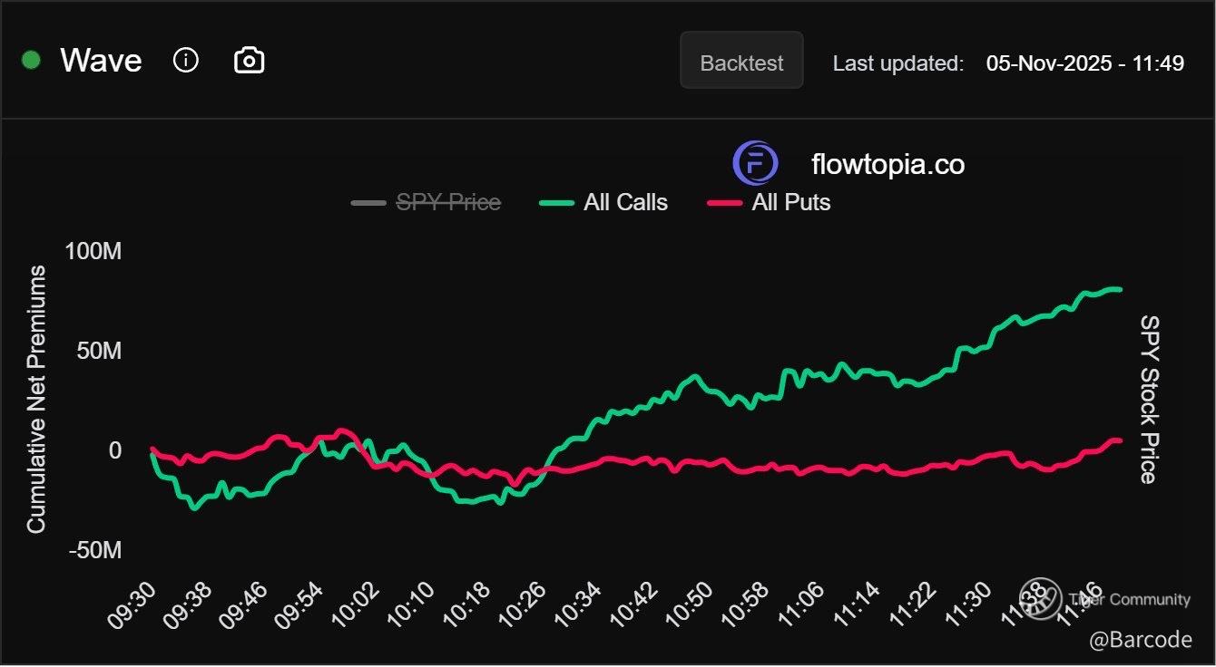 SPX exposures completely reversed as negative DEX zones evaporated and price surged. The Oasis Indicator called it perfectly: call wall at 677.18, put wall at 674.59, and a clean push through 678. Liquidity mapped beautifully, proving once again that options flow tells the truth before price does. Flowtopia data showed cumulative call premium surpassing $100M while puts stagnated, confirming that call buyers drove the intraday trend. Each tick higher in SPY mirrored a new wave of call accumulation, forcing dealers to hedge upward and suppress realised volatility.