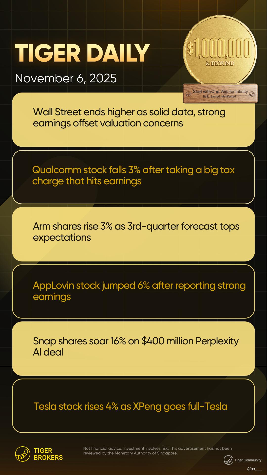 Trading ops are everywhere in this rebound rally—Snap's monster leap screams momentum plays for quick flips, while Qualcomm's pullback might lure value hunters eyeing a bounce. 🤑 Arm's AI edge could fuel long calls if chips stay hot, and Tesla's vote volatility? Perfect for options straddles if you're feeling risky. AppLovin's ad surge hints at sector rotation into mobile tech—pair it with hedges against broader tech wobbles.