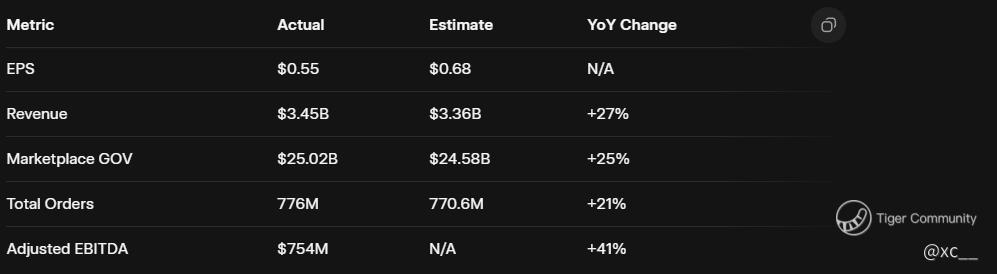Diving deeper, total orders hit 776 million, surpassing forecasts of 770.6 million with a 21% increase from last year. Marketplace gross order value? A whopping $25.02 billion, up 25% and ahead of the $24.58 billion analysts predicted. Adjusted EBITDA also shone bright at $754 million, climbing 41% YoY. Yet, the stock plunged anyway โ why? Blame it on the company's bold plans to pour "several hundred million dollars" into new tech, their quirky Dot robot for deliveries, and expanding globally. ๐๐ค Investors aren't thrilled about potential profit dips in 2026 from these aggressive moves.